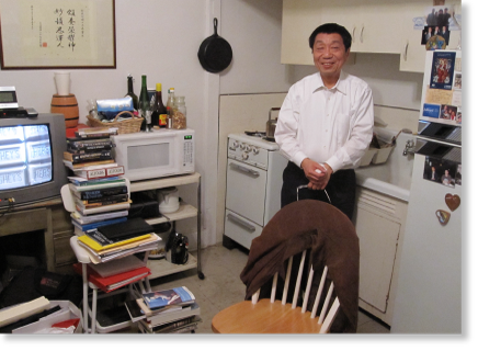 The first room was his kitchen that doubled as a study-away-from-school. It held a floor-to-ceiling bookcase packed with books and memorabilia. Most of the books were about theology and music, of course, but a number of other subjects were represented, including world history, social science and math.